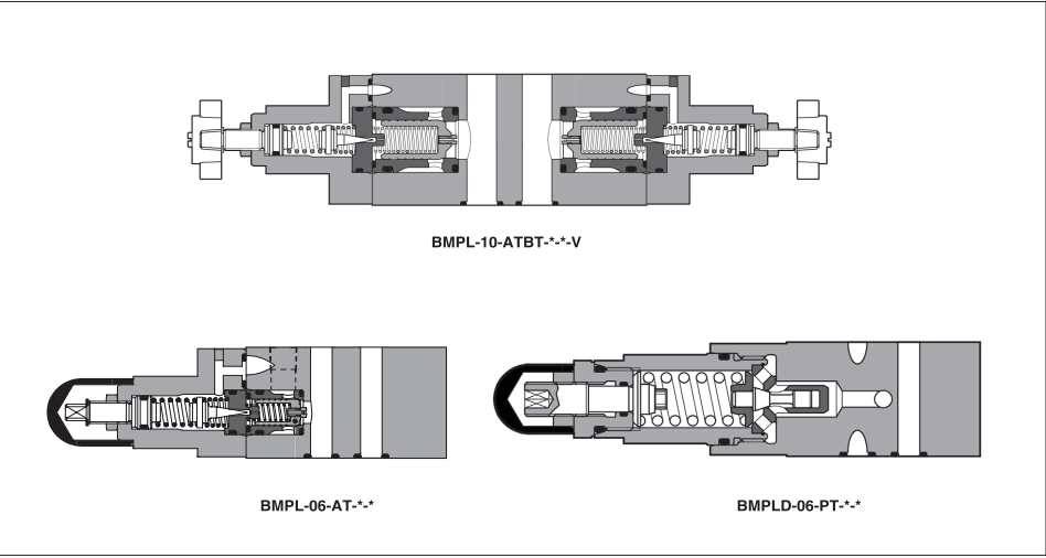 ● 最大流量:BMPLD-06为35 L/min;BMPL-06为60 L/min;BMPL-10为120 L/min;